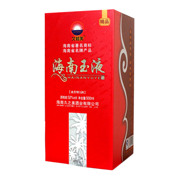 海南玉液酒是海南久之美酒業(yè)有限公司為海南本土市場量身定制的優(yōu)質濃香型白酒,飲后或豪飲后均不上頭、不口干、身體恢復快。2012年被海南省工商局認定為“海南省著名商標”;2013年被海南省名牌產(chǎn)品認定委員會授予為“2013年海南省名牌產(chǎn)品”稱號。該酒經(jīng)多位國家級和省級評酒專家品評,一致認同海南玉液酒不亞于“五糧液” 。該酒的包裝設計富有強烈時代氣息和濃厚地方特色,創(chuàng)造性地采用了“要想身體好常來海南島”宣傳海南的流行語,溶匯了海南文化元素,適宜接待應酬及做饋贈禮品,是海南...[更多內容]